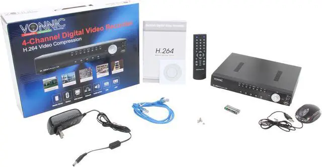 | Package Contents | 4 Channel H.264 DVR Remote Control with Power Network Cable User Manual and CD Software |