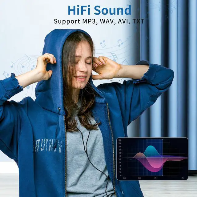 Support listening to music, watching video, audio recorder (wav), e-book (txt format)