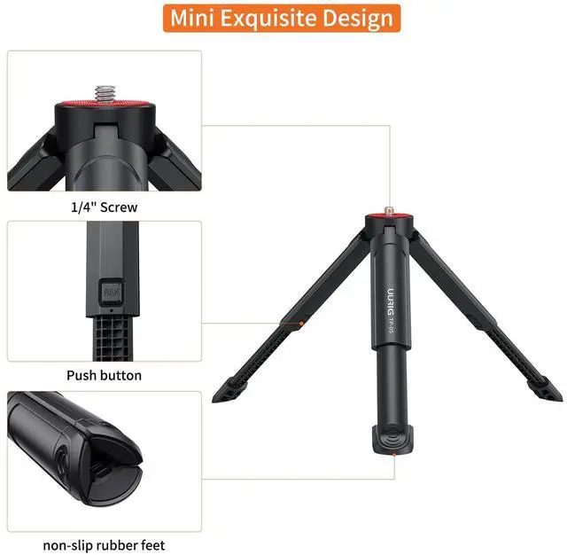 With the anti-skid rubber pad on the end, this tabletop tripod prevents it from slipping at different angles to conform to variable terrain.