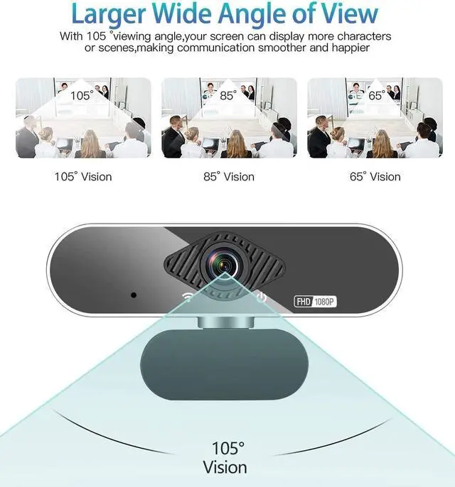 110° wide angle lens PC webcam shows 16:9 widescreen display, perfect for conferences, streaming, presentations or any other application with this webcam.