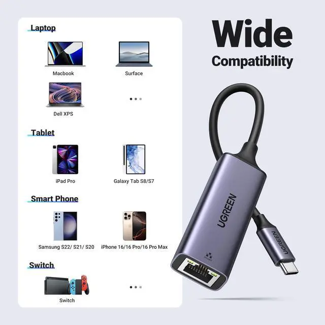 - Built to Last: UGREEN USB C to Ethernet Adapter adopts a new aluminum shell and reinforced connect design, which can make the product extremely strong, durable, and more heat-dissipating