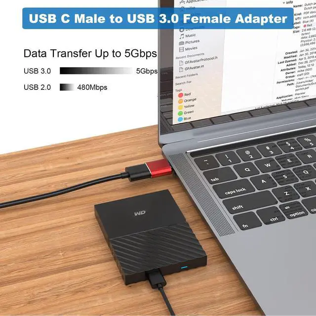 USB C Male to USB 3.0 Female AdapterConvert the USB C port of the PC, laptop or other devices to a USB A port, and then connect the flash drive or other standard USB A device. It can also provide a maximum data transfer rate of 5Gbps.