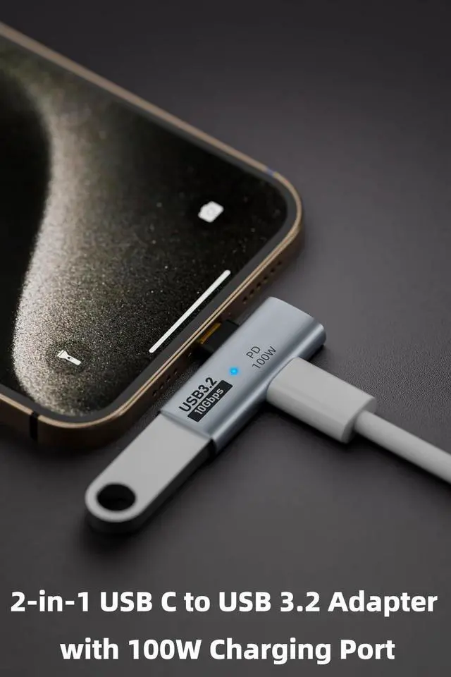 2-in-1 USB C to USB 3.2 Adapter with 100W Charging Port, Thunderbolt 4/3 OTG Converter for Rog Ally, Steam Deck, Quest 2, iPhone 15 Series, iPad, MacBook and More Type C Device
