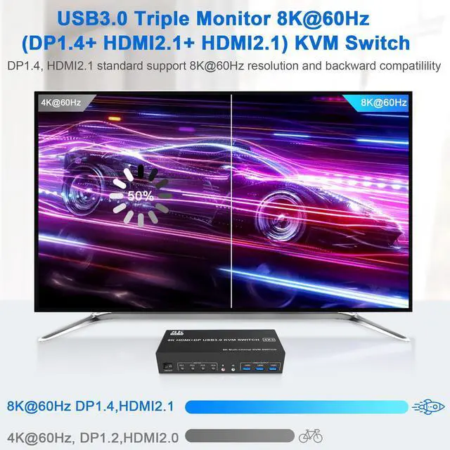 Ultra HD 8K@60Hz Triple Monitor KVM Switch