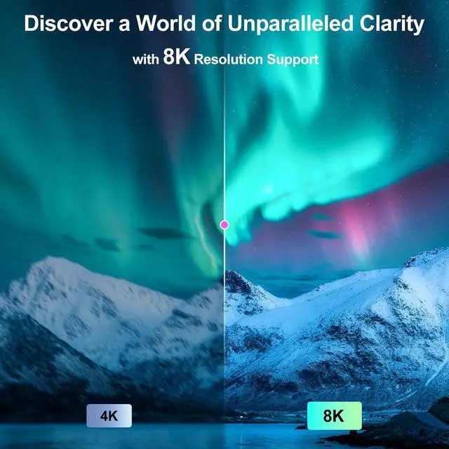 • Support 8K, and 4K resolutions, It supports HDCP, HDR, 3D, VRR, and more, with Dynamic HDR, each scene shines with optimal depth, brightness, detail, contrast, and colors