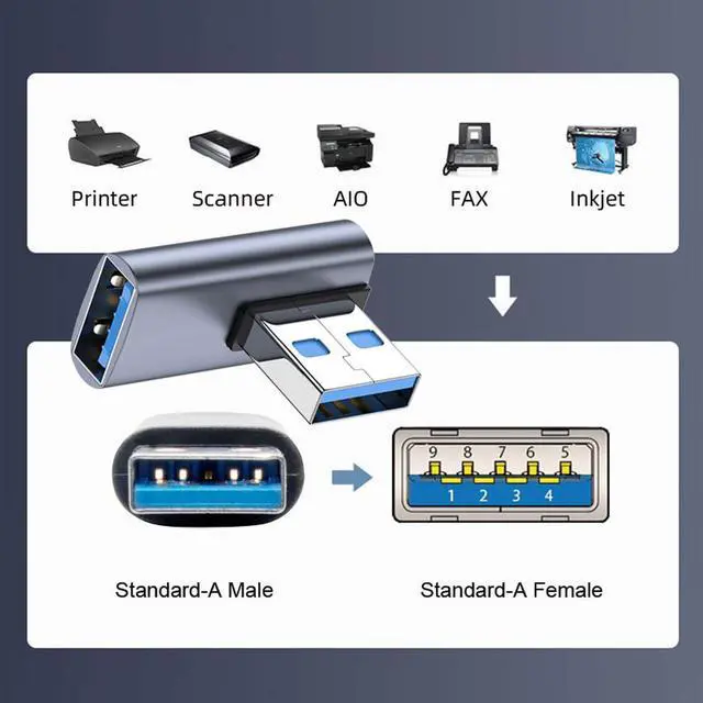 • Angled USB 3.0 Adapter, Type A Male/Female,Support 10Gbps data transfer rating.