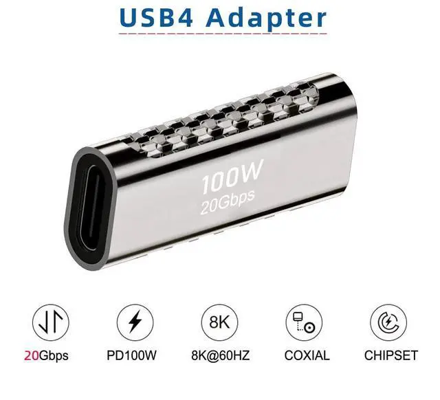 20Gbps USB4 Type C Female to Female 100W Power Data 8K Video Adapter for Laptop Phone