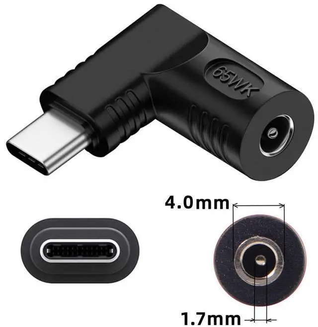 Vszerda Adapter DC 20V Jack 4.0x1.7mm Input to USB-C Type-C Output 90 Degree Right Angled Power Plug Charge Adapter 65W