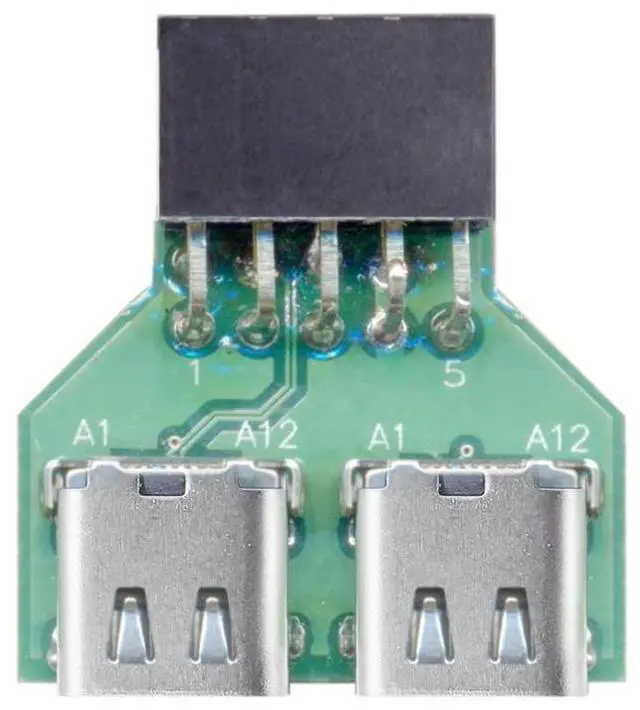Dual Ports USB 3.1 Type C USB-C Female to USB 2.0 Motherboard 9pin 10pin Header Adapter PCBA 480Mbps