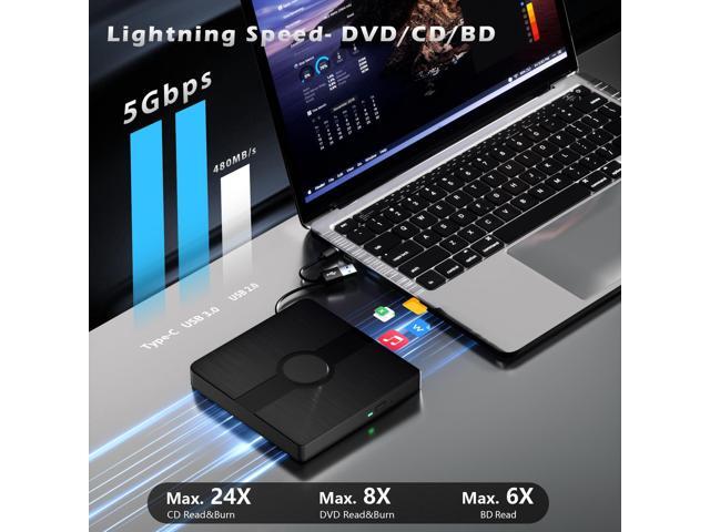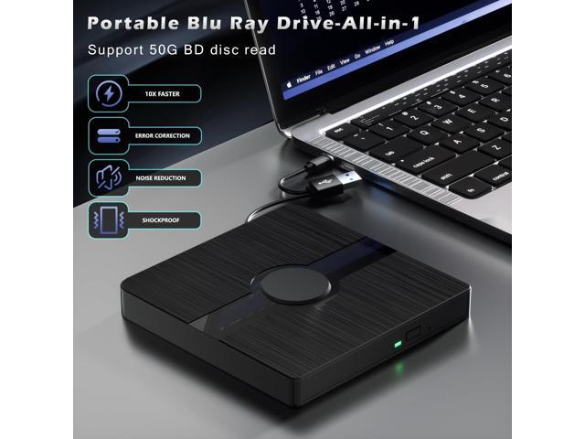External Blu Ray Drive, BD Player with Read/Write Capability Portable Blu-ray Player with USB 3.0 and Type-C CD/DVD Burner 3D Blu-ray Drive Compatible with Win10 and Mac OS,Drive Blu Ray Player for PC
