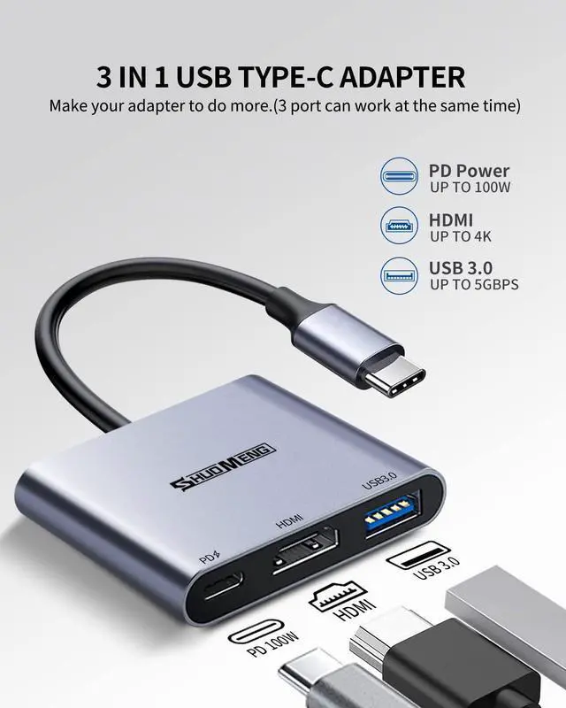 Introducing our versatile 3-in-1 USB-C to HDMI Adapter, the perfect solution for connecting your devices to a TV, computer monitor, or projector.