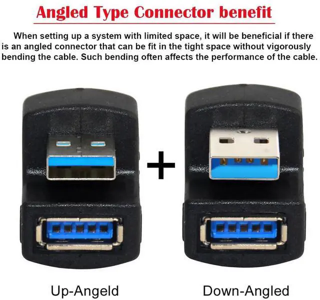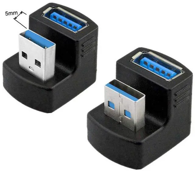 Angled USB 3.0 Adapter, Type A Male/Female,Support 5Gbps data transfer rating.