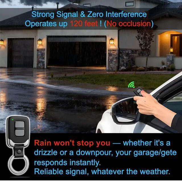 With a signal range of up to 120 feet, you can conveniently open your garage from the comfort of your car. Enjoy seamless access as you approach your home
