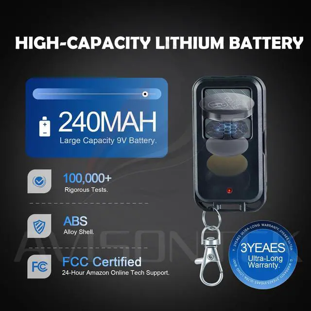 Include 2 x Remotes with CR2032 Battery Pre-Installed, Keychain, Instruction Manual Provided