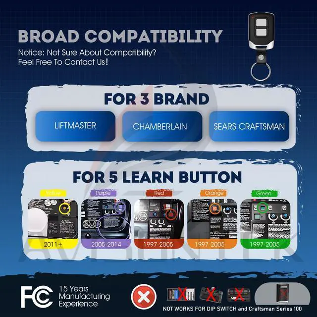 NOT Works for DIP Switch Opener / NOT Compatible with Genie /Overhead Door /Linear /Wayne Dalton /Stanley Openers.
