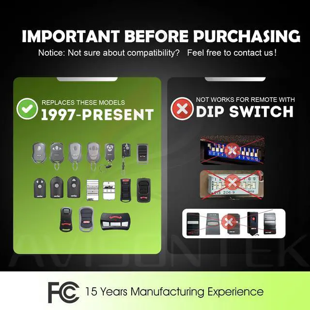 Wide Compatibility This Genie Garage Door Opener Remote is Universal for All Genie Garage Door Opener Since 1997.Note: NOT Support Dip Switch Opener!