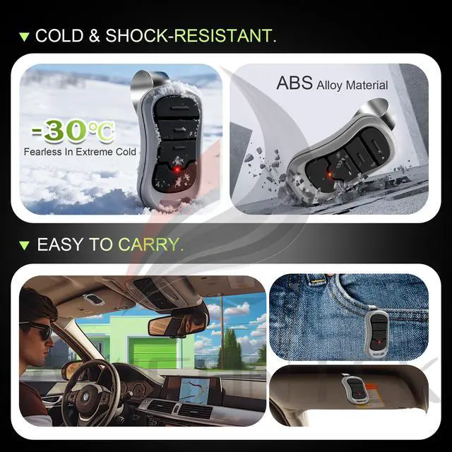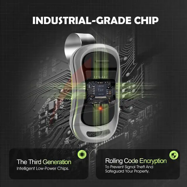 Industrial-Grade Chip With Low-Temperature ResistanceBuilt With A Rugged Industrial-Grade Chip, This Genie Garage Door Opener Remote Performs Reliably In Extreme Cold, Preventing Battery Drain And Signal Failure During Freezing Winters.