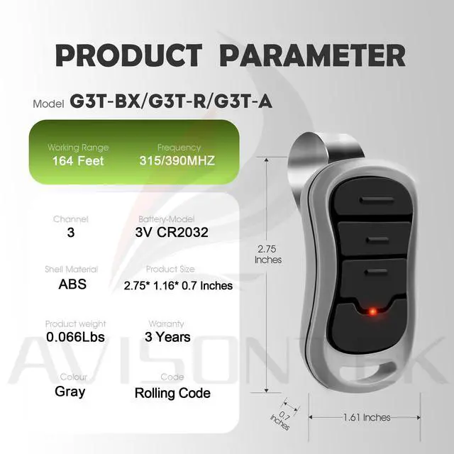 2-Pack Genie Garage Door Opener Remote G3T-A/G3T-R/G3T-BX, Compatible with All Genie Intellicode Garage Door Opener10 Years Warranty