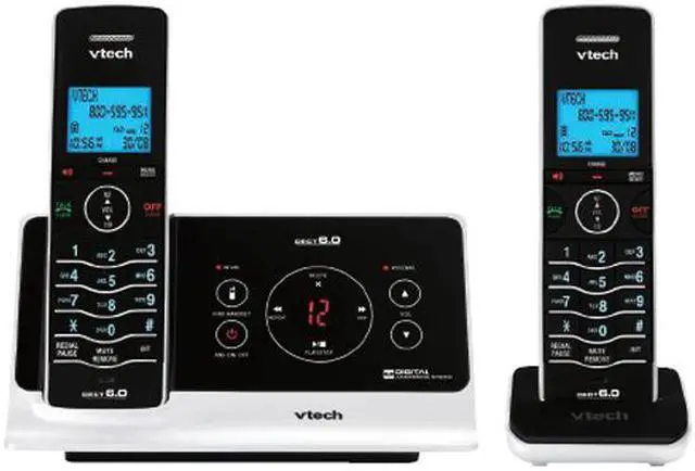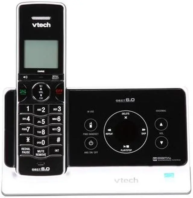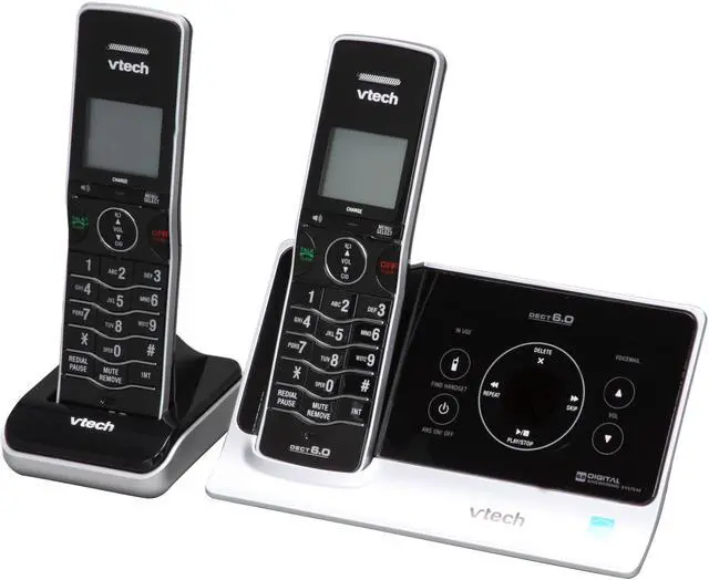 | Additional Features | DECT 6.0 Digital technology provides the best sound quality, security and range in cordless phones No buttons on the base-uses touch technology Interference free for crystal clear conversations Protect yourself from identity theft with digital security Slim curved design Answering system available from handset Audible time and date stamp on recorded messages Backlit message counter Digital answering system—no tapes or moving parts Remote message retrieval—call in from anywhere to get your messages 100% RoHS compliant Any key answer ENERGY STAR qualified cordless phone Last number redial Page/handset locator Slim handset size Stylish metallic finish Trilingual prompts—choose between English, Spanish or French Voicemail waiting indicator WiFi friendly—won't interfere with wireless networks |