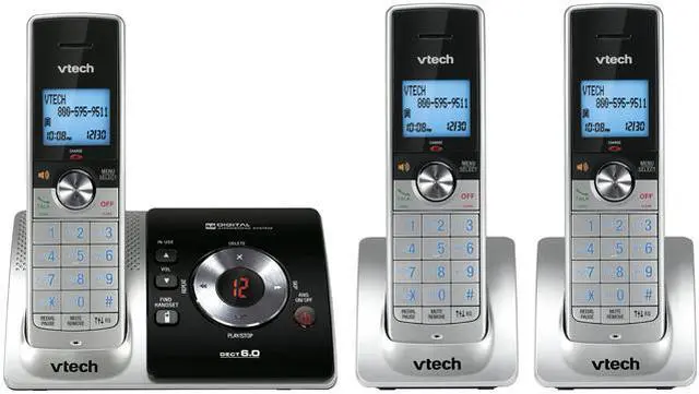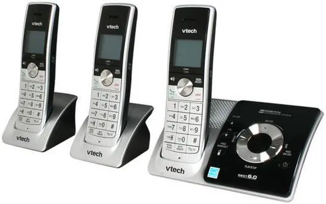 | Additional Features | Key Features DECT 6.0 Digital technology provides the best sound quality, security and range in cordless phones Expandable up to 5 handsets using only one phone jack Three handset system—includes 3 handsets and requires only one phone jack Caller ID/call waiting*—stores 50 calls Handset speakerphone—enjoy hands-free conversations Interference free for crystal clear conversations Protect yourself from identity theft with digital security Backlit message counter Additional Features 100% RoHS compliant Blue backlit keypad and display ENERGY STAR qualified cordless phone Equalizer—choose from 4 different profiles to best match your hearing Page/handset locator Push-to-talk intercom Selectable ring tones Stylish metallic finish Trilingual prompts—choose between English, Spanish or French WiFi friendly—won't interfere with wireless networks |