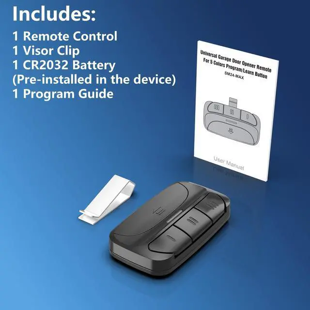The lightweight remote also features a metal clip that allows you to have the remote attached to your vehicle’s sun visor. It lets you open or secure your door with a quick touch of a button, so you can go about your day with less stress.