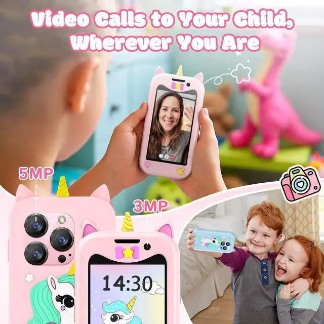 2.HD Cameras & Parent-Child Communication: Equipped with front and rear high-definition dual cameras, our mini smartphone allows children to capture daily moments and preserve precious childhood memories. This toddler phone also supports video calling functionality: when children are apart from parents, real-time video calls enable face-to-face interaction, breaking spatial barriers, narrowing the parent-child distance, and letting parents stay updated on their childs status anytime.
