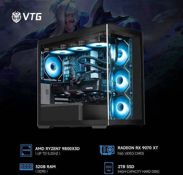CPU:Harness the ultimate gaming edge with AMD Ryzen 7 9800X3D Processor. Enjoy faster gaming with 2nd gen AMD 3D