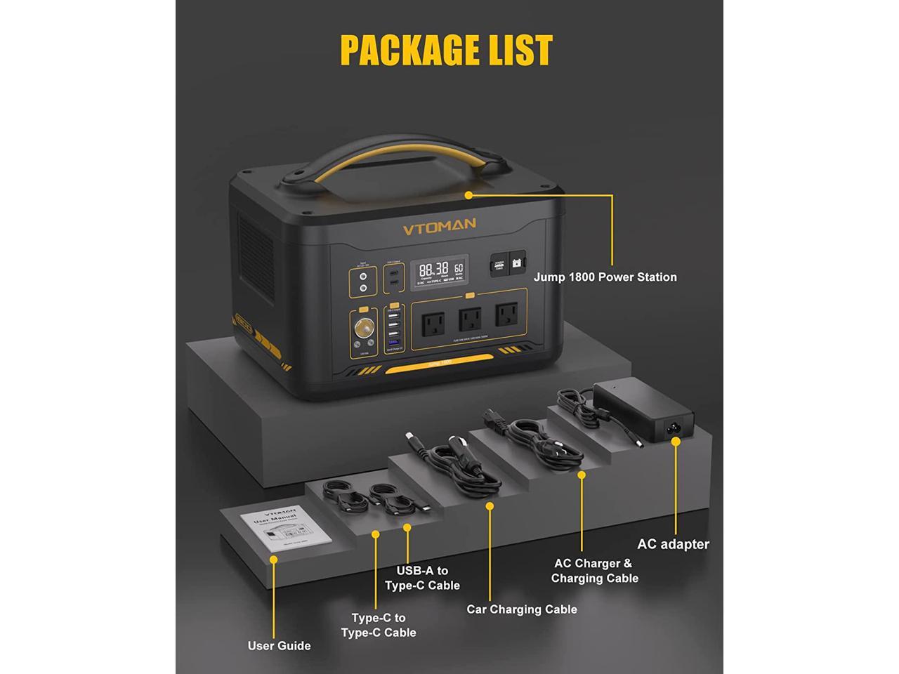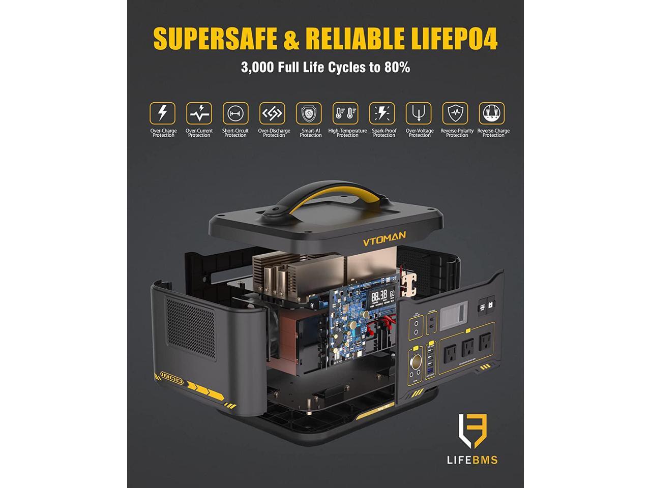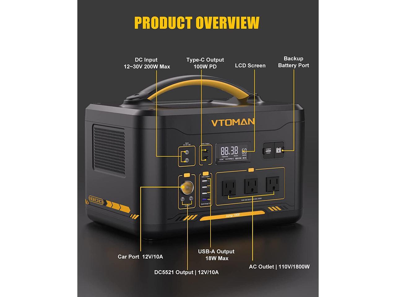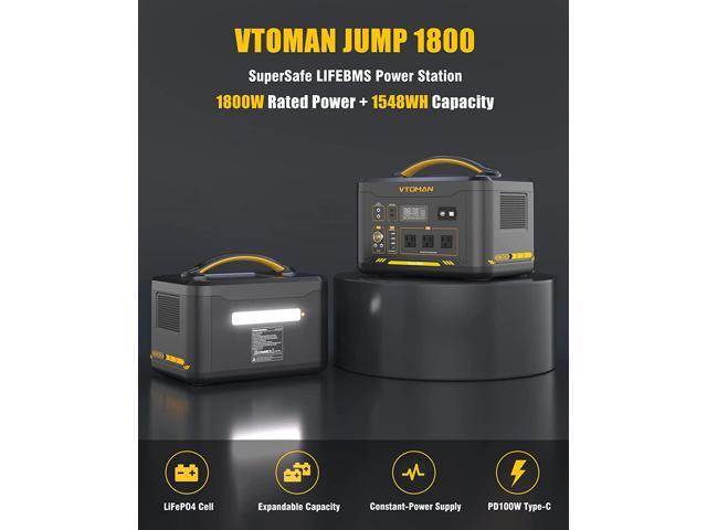 VTOMAN Portable Power Station 1800W, 1548Wh LiFePO4 Battery Power Station with Expandable Capacity, 1800W Constant-Power Battery Generator with Dual PD 100W Type-C & Regulated 12V/10A DC