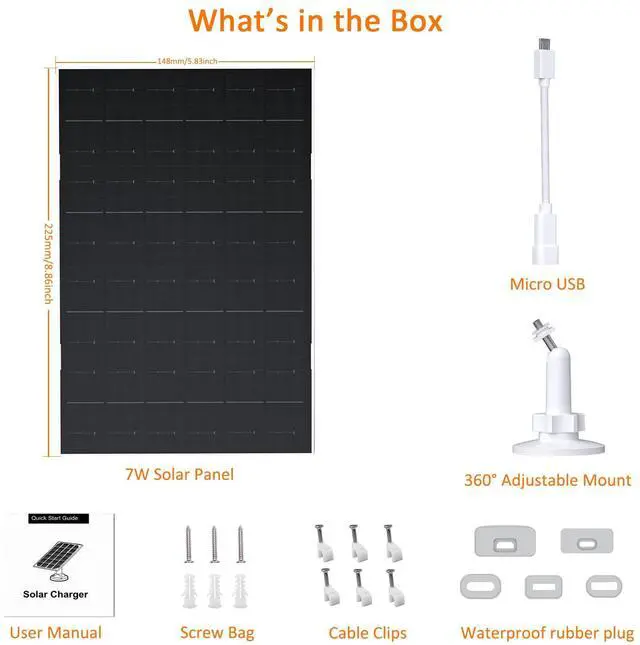 Installation is simple! Just mount the 360° adjustable bracket using the included screws, attach the solar panel, and connect the cable to your camera. No extra tools are required, and the setup takes only a few minutes.