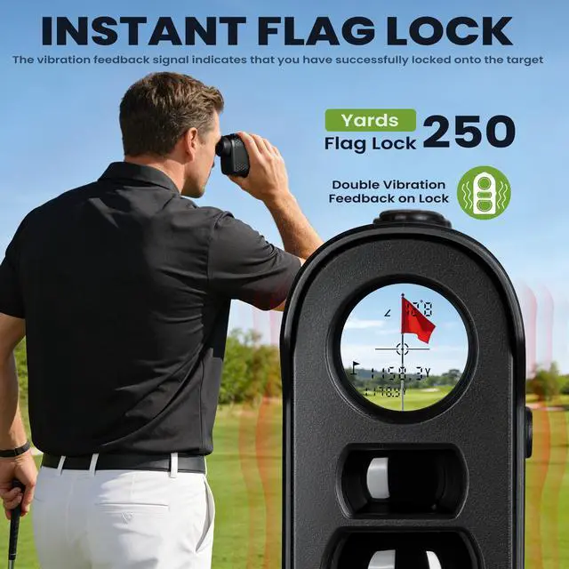 Slim enough to slip right into your pockets or golf bag side compartments—no bulky hassle on the course! The ergonomic, non-slip textured grip fits perfectly in your hand, letting you aim and measure distances with just one hand. No strain—just quick, steady readings when you need them most.