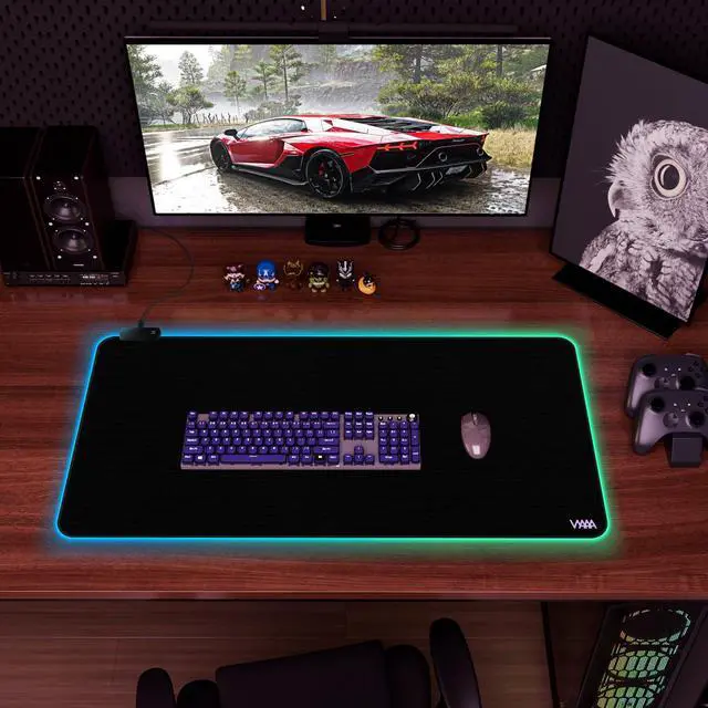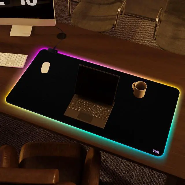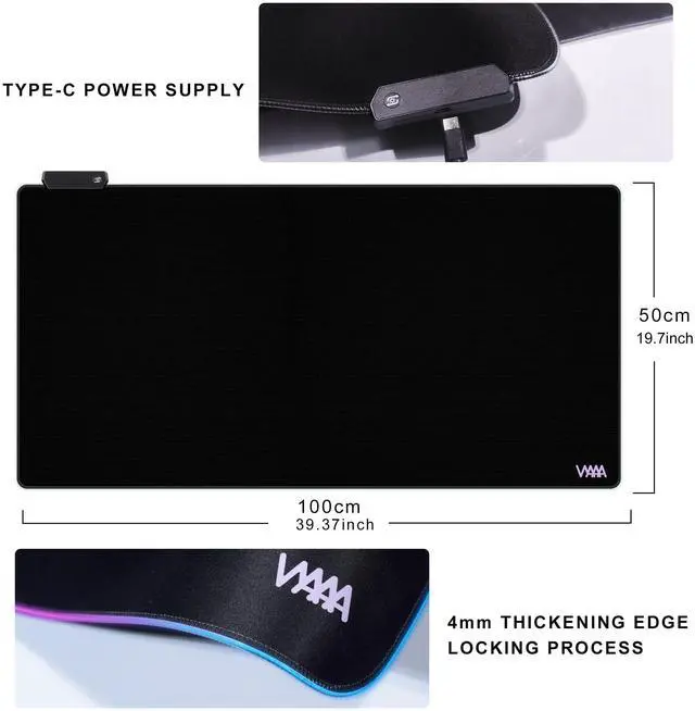 Extra large RGB Mouse Pad: This Black mouse pad measures 40x20 inch/100x50 cm, making it larger in size compared to other light up mouse pads. It can fully accommodate keyboards and mice of any size, while leaving ample space for other devices such as laptops and monitors.