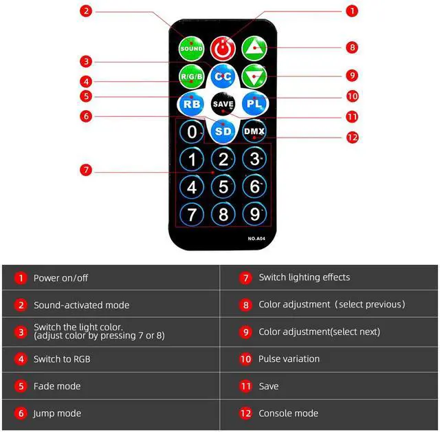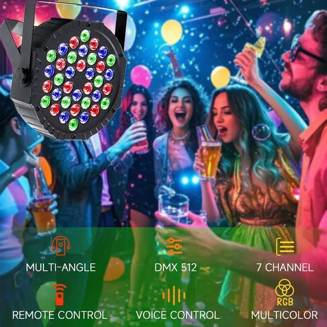 - 1?Multi-mode effects: The 7 channels include static color, strobe, auto cycle, voice control, DMX-512, master-slave sync, gradient transition.