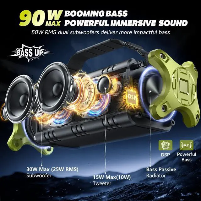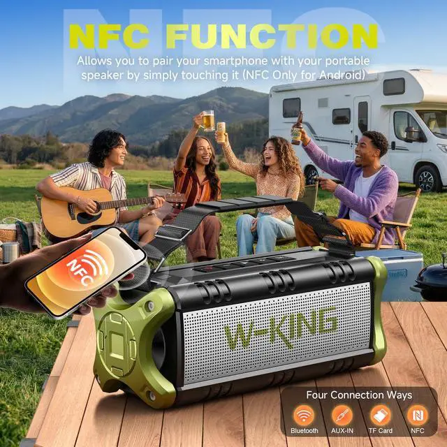The W-KING D8 bluetooth speaker is exactly what you need.