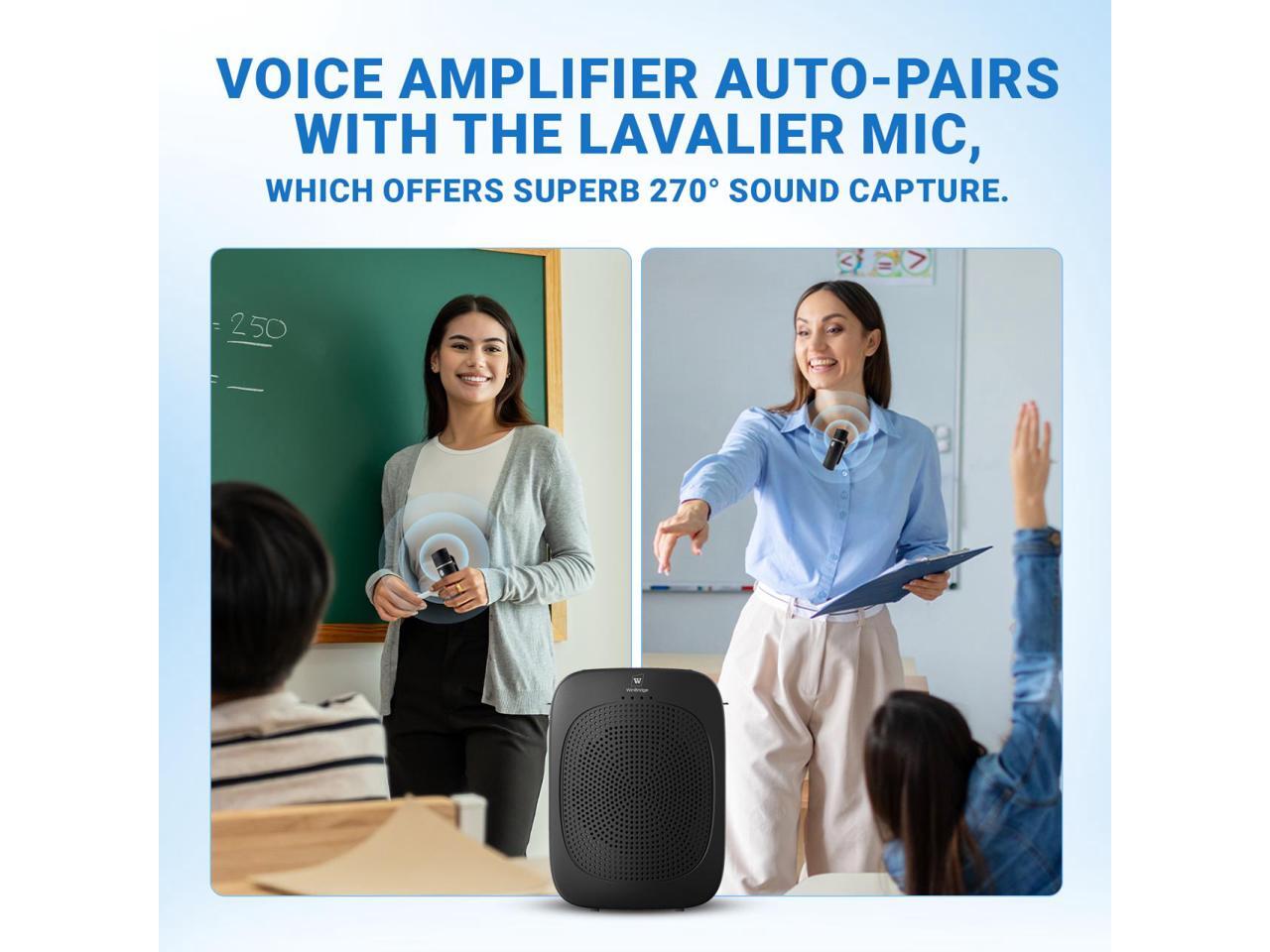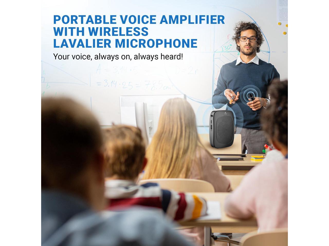- Wireless Voice Amplifier with Bluetooth 5.0 & 15m Range:Experience hands-free freedom with this Bluetooth voice amplifier! The wireless lapel mic pairs instantly at startup and works up to 15m (49ft)perfect for moving around classrooms or stages.