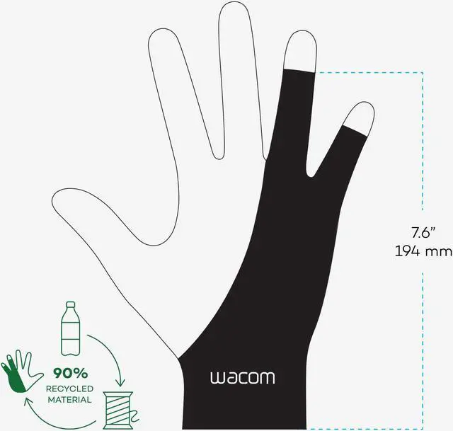 Wacom Drawing Glove, Two-Finger Artist Glove for Drawing Tablet Pen Display, 90% Recycled Material, eco-Friendly, one-Size (1 Pack)