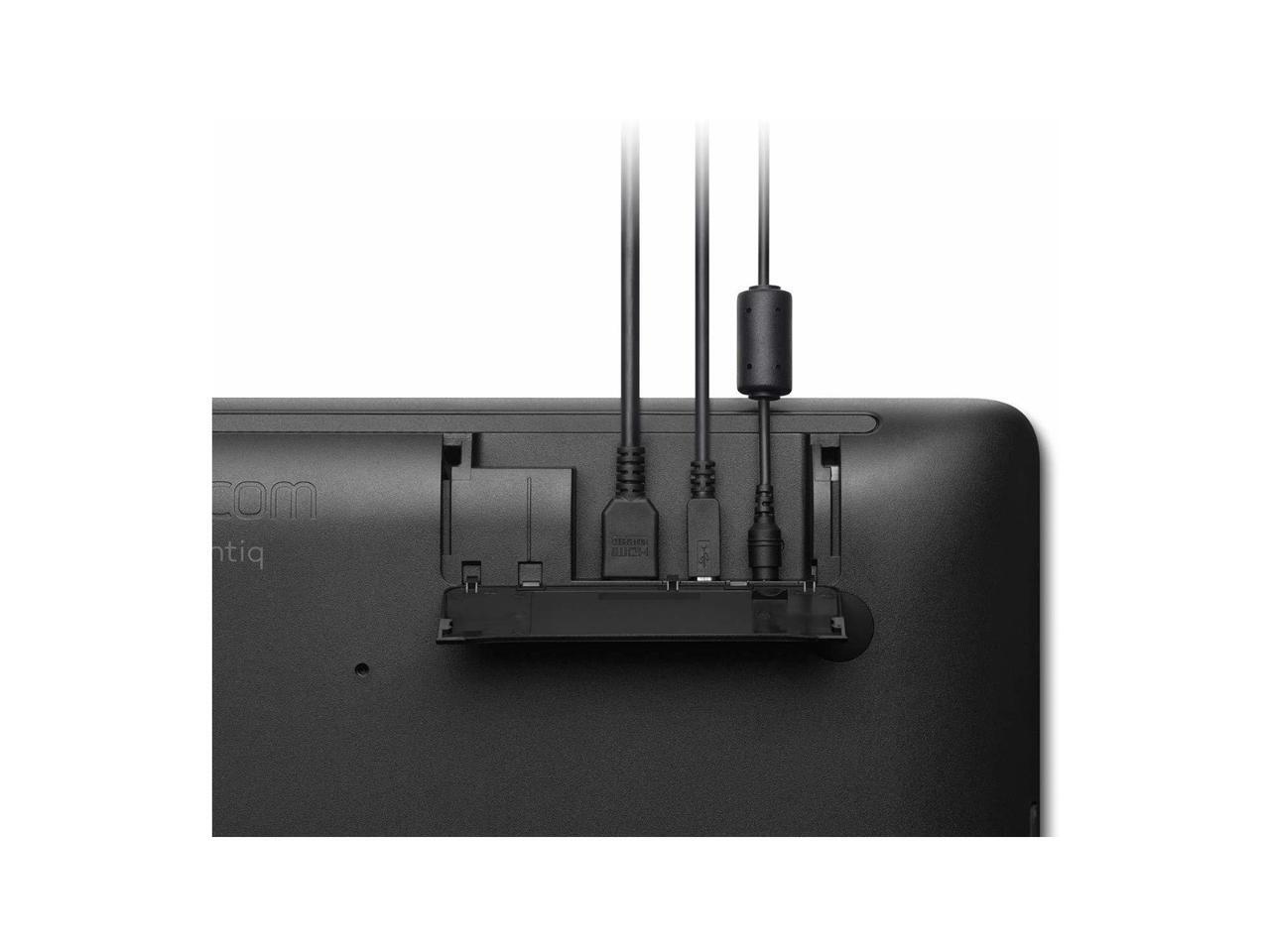 The cable connects to the top of the screen and avoids unwanted desk clutter. The 3-in-1 cable that connects to your Wacom Cintiq 16 combines power, video and data in one.