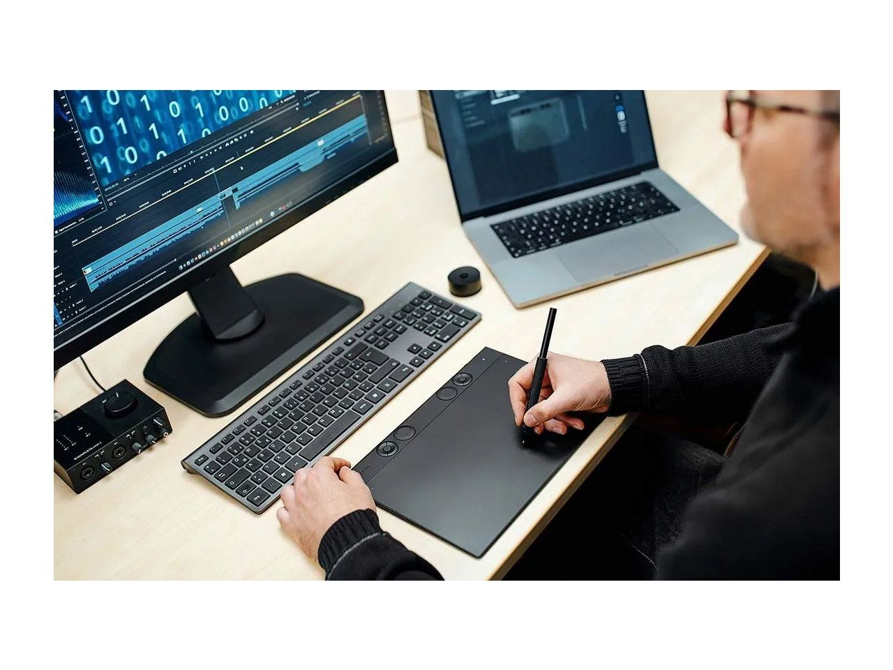 Use Intuos Pro with USB or pair wirelessly via Bluetooth to multiple computers with a simple switch