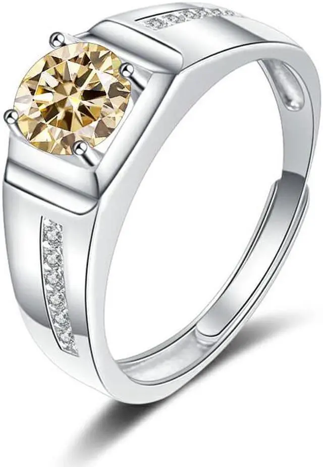 1 Carat D Color VVS1 Moissanite Men Rings S925 Sterling Silver Round Cut Diamond Engagement Rings for Men - Wedding Band Valentine's Day Birthday Gift with Certificate