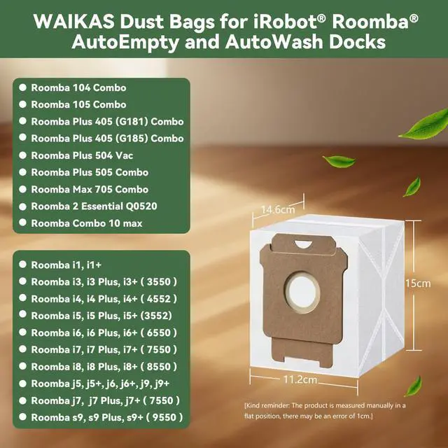 Compared to original Roomba vacuum bags, WAIKAS replacement bags deliver identical performance and fit at a lower cost. Our patented designs offer premium quality for superior value.