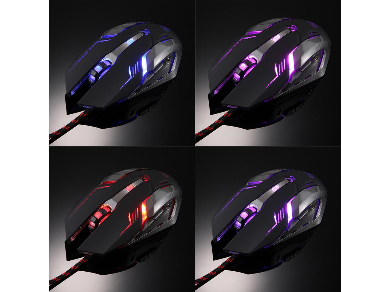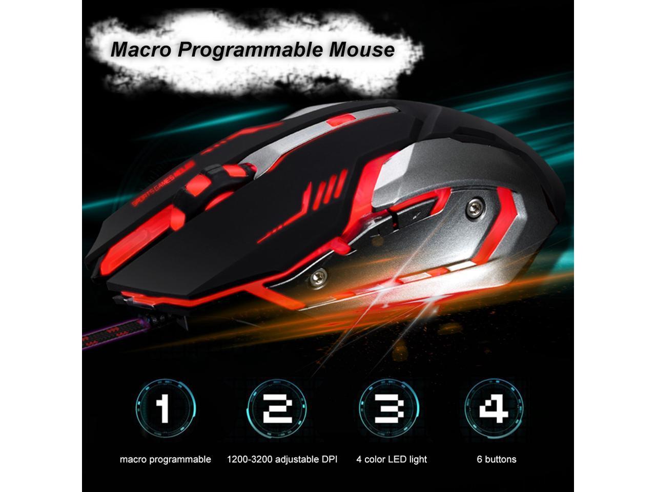 Jansicotek K8 Gaming Mouse Ajustable 3200DPI 6 Buttons Optical Macro Programming USB Game Mouse Gamer 4 Color Breathing Variable Lights Black