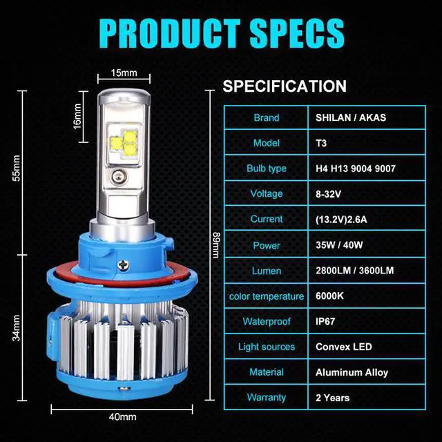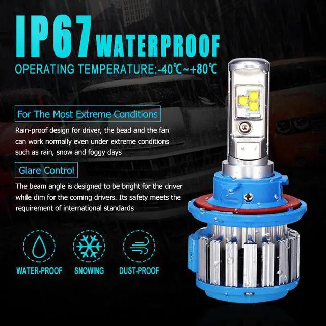 Powerful LEDs provide 7200 lumens(3600LM per bulb)output, producing bright light for increased visual field and distance visibility in darkness and gloom.