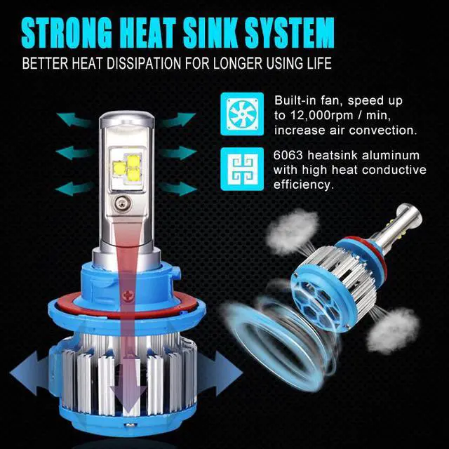 Powerful Turbo Cool fan to ensures your LED Headlight bulbs Over 50,000 hours of brilliant continuous light. Heat sink stays 30% cooler than standard.