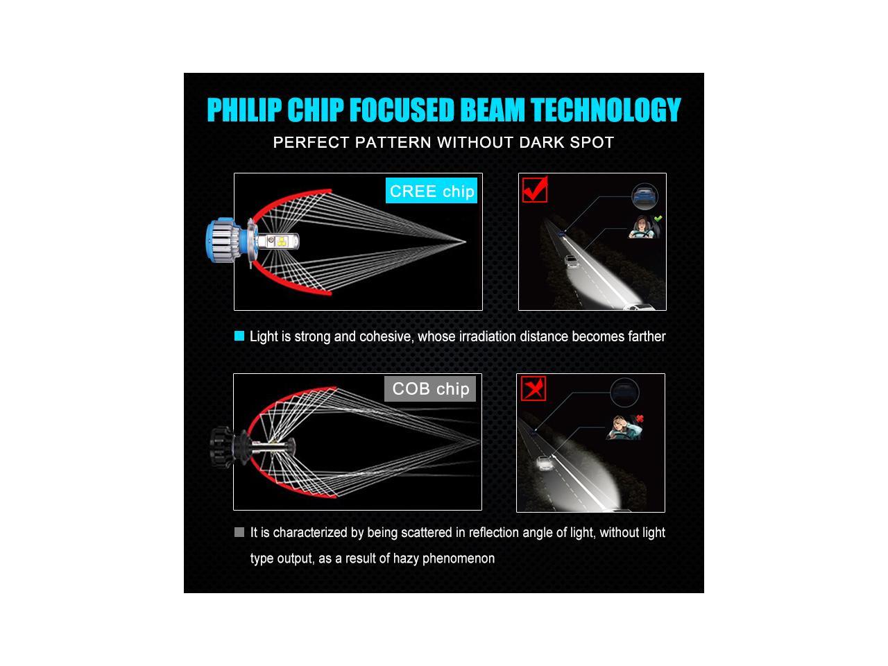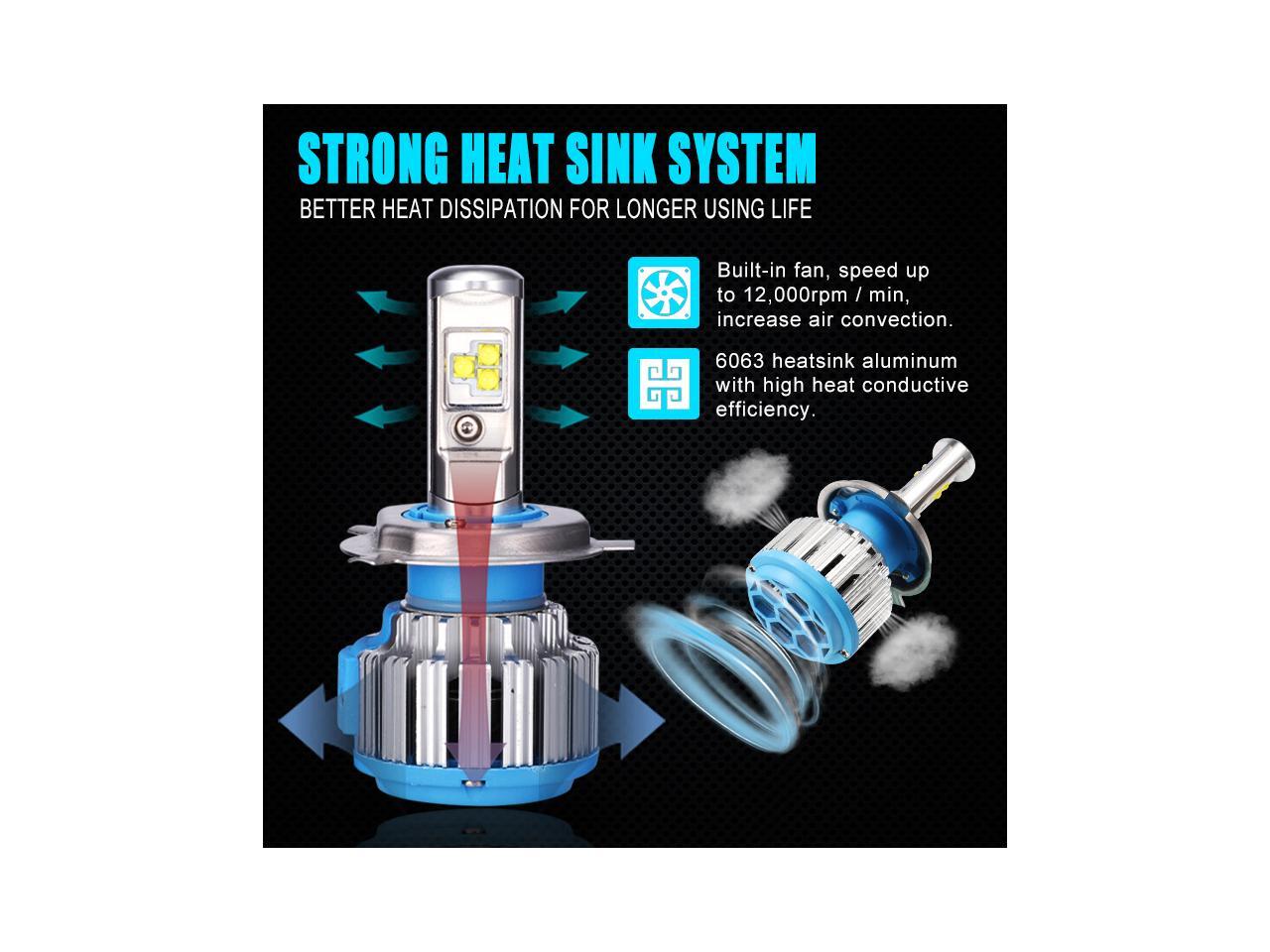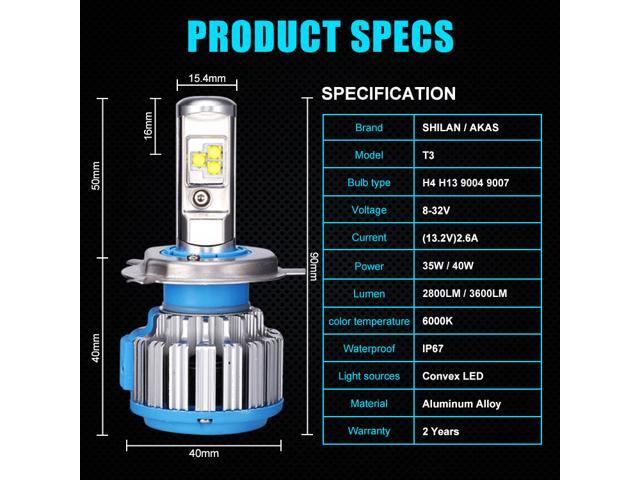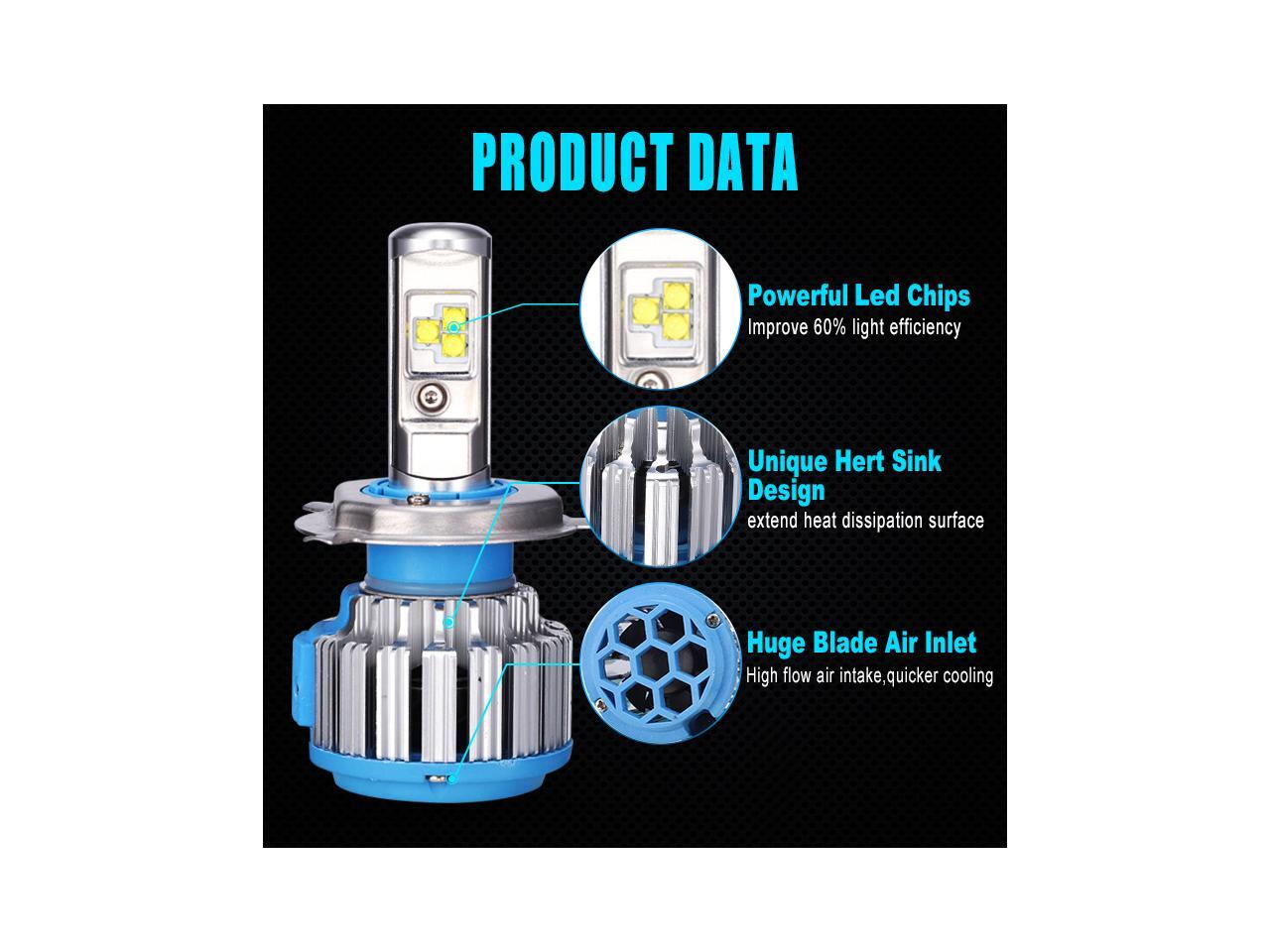 H4(HB2/9003) Hi/Lo LED Headlight Bulbs Car Light Conversion Kit Convex LED Chilps 70W 7200LM 6000K Cool White - 2 Year Warranty