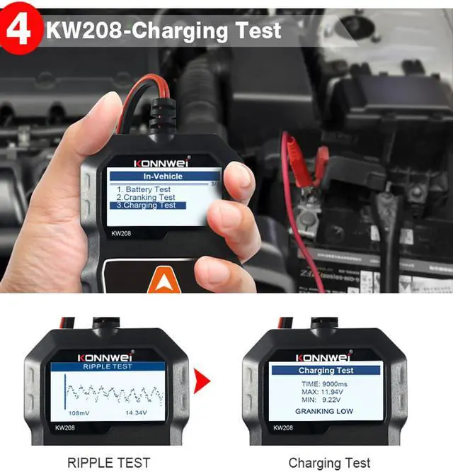 [Kw208 Battery Tester Has the Following Functions, such as battery test, start test, charging test, etc. ]
