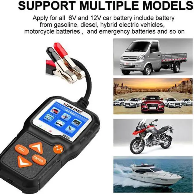 6 & 12 Volts Battery Tester: As the upgraded version of KW600, KW650 can test all 6V and 12V 100-2000CCA batteries including regular flooded, AGM flat plate, AGM spiral, or gel batteries. The perfect automotive battery testers to diagnose the batteries of car, boat, lawn mowers, etc. Perfect for Father's Day Gift.