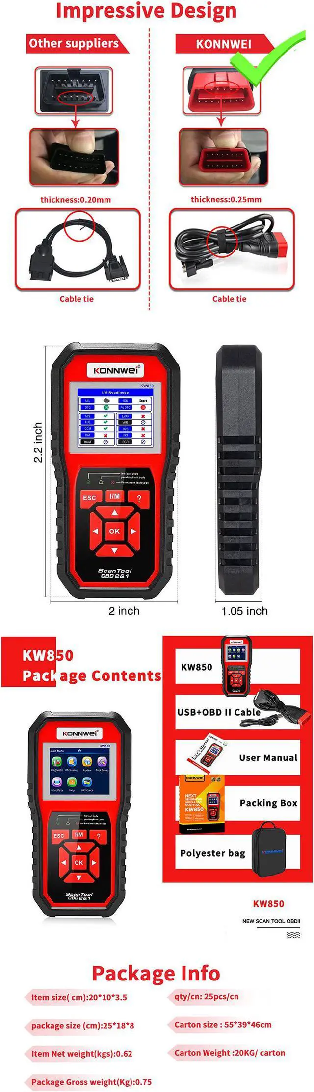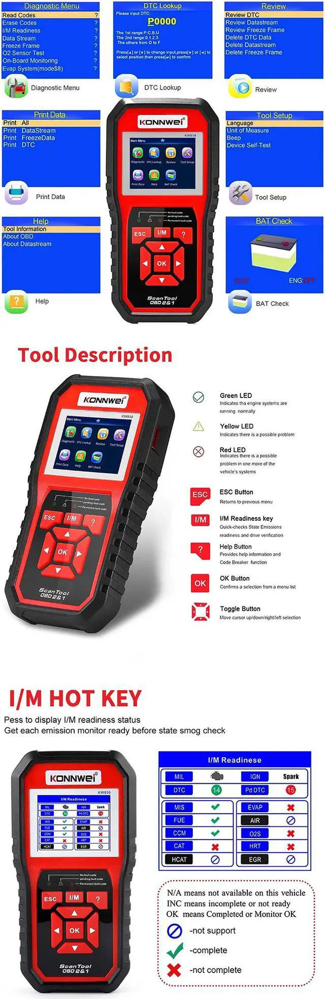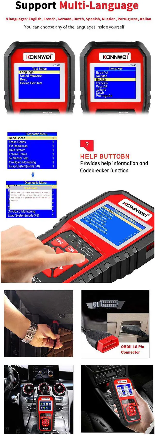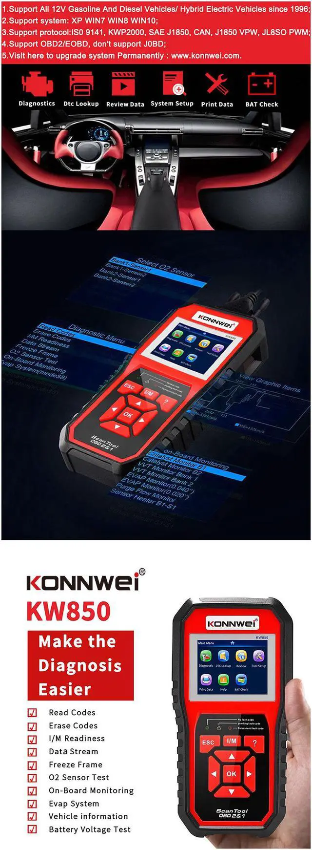 [KONNWEI KW850 OBDII Code Scanner Features]