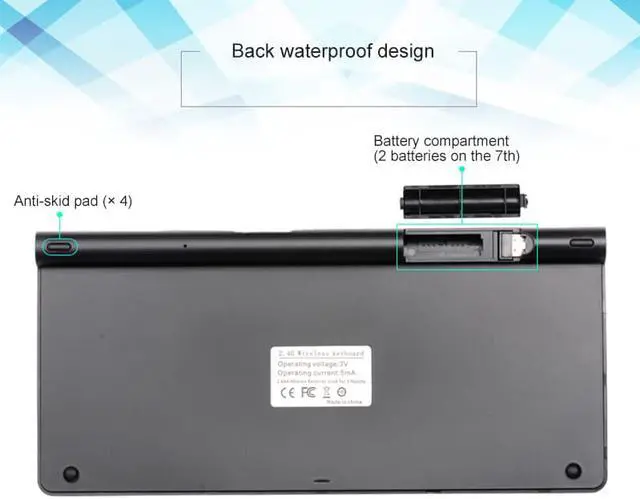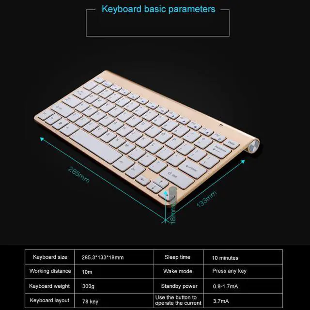 Ultra-Thin Silent Wireless Keyboard and Mouse: Wireless keyboard with 0.8 inch ultra-thin full sized design, save space and be easy to carry. And the advanced scissor switch whisper-quiet keys design and silent click mouse, shows your love and care to your surroundings especially in library, coffee shop or late work at night.