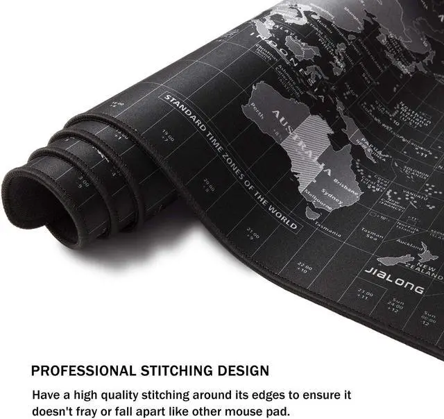 Extended Large Size, Gaming Mouse Pad, Non-Slip Rubber Base, Large Size Desk Pad, Black World Map & Color Sewn (Black, XXL Size 31.50 X 15.75X 0.08inch)