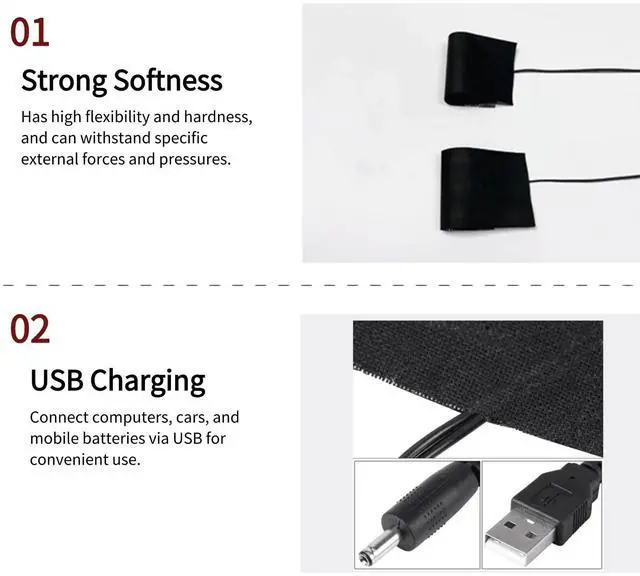 This USB heating pad is19.6*6cm, heating temperature is 35-50 degrees.It is and easy to use. It is mainly used for the heating of insoles, slippers to keep warm. Light in weight, easy to carry.