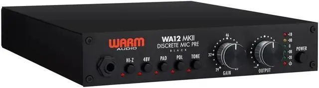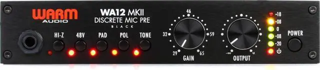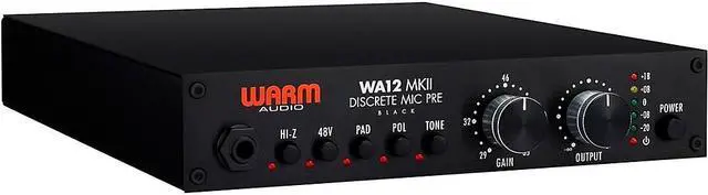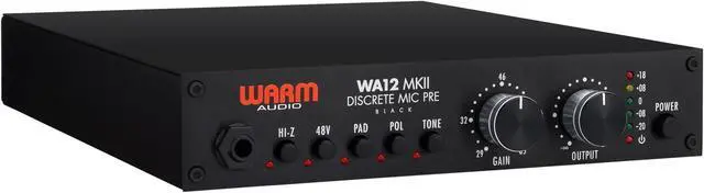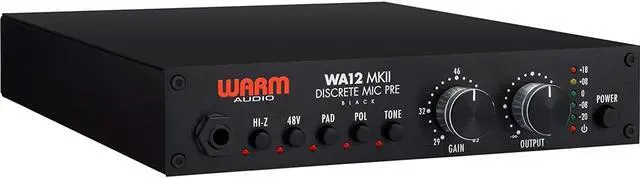 Handle all of your single-channel audio recording needs with the black Warm Audio WA12 MkII, a preampliflier for professionals on a budget. This is a discrete, dual-transformer, high voltage mic pre that offers high headroom, a low noise floor, and sonics designed to impart a larger-than-life quality. Based around an X731 opamp derived from the Melcor 1731, the pre offers a sound that can be warm or clean, saturated or transparent, depending on how hard you drive it. Drive it softly or hard, it won't change the essential sonorous quality of the unit.